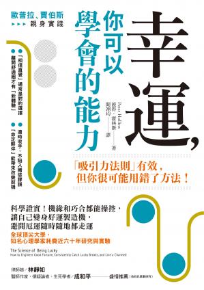 「吸引力法则」有效,但你很可能用错了方法!耗费近六十年,全球顶尖大学,权威心理学家倾心研究与实验!欧普拉、贾伯斯亲身实践,运气绝非天注定,幸运能力你一定能学会!我们永远不知道下一秒世界会发生什么事、周遭的人会製造怎样的麻烦。不可「控制」的人事物,让生活充满无法预期的种种——◆急着赶路,开车沿途却总是遇上红灯◆好心帮忙,到头来却背黑锅、被所有人责怪?◆出门踩到狗屎、开心逛街却突遇大雨、路面崎岖导致摔跤◆相同才华、一样认真,却是他人受重用?◆巧遇多年未联络亲友,意外得到高薪工作机会◆对统一发票,经常中奖,小财不断?你是否觉得,有些人好像比较幸运,做事容易成功;有些人却似乎衰神上身,诸事不顺?为了拥有幸运人生,许多人选择算命改名、研究星座、配戴幸运物,但其实问题不在水逆或风水不佳,而是多数人没学会让自己幸运的能力。★想要幸运?先了解自己的「这些特质」请各位试着回答以下问题——□喜欢尝试新事物,对不同体验充满期待□通常会看事情的正向面,相信时间过了就会否极泰来□对于擅长的领域,十分相信自己的直觉□会预先考虑最糟状况,试着备妥方案□留意说话内容,不随便表露态度□乐于忙碌,不因事情可能耗费时间或精力而不做上面的选项勾选越多,代表幸运指数越高。倘若你并非如此也别担心,因为幸运是可以透过方法得到的。长期从事心理学研究的彼得.霍林斯,将从多所顶尖大学、数位知名心理学家的实验结果,以「科学观点」及「心理学角度」来剖析「运气」的真实面目,并揭露欧普拉、贾伯斯等名人是如何运用幸运能力来获得成功。最重要的是,他将告诉你,幸运能力是可以学习并上手的。★好运其来有自,运气可以控制!我们所孰知的许多卓越人士,其实和多数人一样没有天生好命,但为什么他们能如此成功?欧普拉出生于贫困家庭,却成为脱口秀女王;贾伯斯大学没有毕业,却创立了苹果帝国。关键在于他们学会了让自己幸运的能力,并善加利用。◆欧普拉——「幸运」就是当「準备」遇上了「机会」当欧普拉看到普立兹奖小说《紫色姊妹花》(TheColorPurple)时,便深受书中黑人女性苏菲亚的故事吸引。当时生活困顿的她,反覆阅读这本书,想像自己正如书中人物般,打破先天的障碍,梦想成真。欧普拉的「想」是十分具体且持续不断的画面。而她最终也在製片公司的试镜考验下,获得史蒂芬.史匹柏的青睐,参与《紫色姊妹花》的电影演出。??欧普拉拥有「期望获得某些东西时,想像并努力实践」的幸运能力,她对未来始终抱持期待,不会轻易放弃。◆贾伯斯——「幸运」是「顺从本能与直觉」来行动贾伯斯年轻时的运气并不好,更受家中经济影响被迫休学。休学期间,他因为好奇心旁听了字型设计课程,在不确定课程是否真的有用的情况下,他相信自己预感:字型设计将会成为自己事业中很重要的部分。而这堂课所学,也真的在多年后成为苹果产品的品牌基础。贾伯斯日后坦言:「最重要的,要有勇气跟随你的内心与直觉,它们才知道你真正想要的是什么。」??贾伯斯拥有「听从直觉、做出正确决定」的幸运能力,不会耗费过多时间考虑,使机会错身而过。★《祕密》没有说清楚的好运关键「吸引力法则」强调透过「想像」可以引领你走向成功。但一定不少人有这样的疑惑:为什么我的想法已经改变,却还没成功?其实,不是吸引力法则无效,而是你没有用对方法。《幸运,你可以学会的能力》将提供「升级版吸引力法则」:你该关注的是「过程」而非「结果」。「升级版吸引力法则」强调除了「确立目标」和「想像目标」外,「心想事成」更需要「行动力」来达成,经由想像「过程」,在脑中不断演练,将能有效地增强自己的能力、进而获得更多机会。这正是《祕密》没有说清楚的部分。★学会