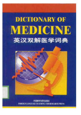 Beijing:ForeignlanguageteachingandresearchPress,2001.—2;674p.本词典根据英国彼德科林出版公司(PeterCollinPublishing)第二版翻译,采取英汉双解的形式,一般词条均给出汉语对应词,读者可同时借助英语解释理解词条的含义。本词典的解释用英语控制在500词以内,例句丰富,读者可据此学习该词条的具体用法。另有大量选自国外着名刊物的注释(Comment)和引文(Quote),有助于读者在实际工作中运用、掌握。语法注释(Note)则告诉读者该词有无复数、特殊的复数拼法、动词的不同变化形式和美国英语与英国英语的区别等。本书的附录则给出了人体结构图、食物热量表、人名术语一览表和其他一些有用的信息。本词典收词多,词汇新,共收集了12,000余词条,涵盖的领域也极其广泛,包含了内、外、妇、儿等临床医学,病理、解剖等基础医学以及护理、制药等领域的词汇。本词典的编排亦很有特色,把由多个词组成的词条和它的缩略语分别作为词条列出并加以解释,方便读者查阅。本词典的翻译力求译名的规范化、标准化。在翻译过程中译者参考了国内最新的、权威的词典,如青岛出版社出版的《英中医学辞海》、学苑出版社出版的《英汉汉英医学大词典》、上海科学技术出版社的《英汉医学辞典》、在此译者表示衷心谢意。本词典是一本为医护专业的学生及从业人员编写的医学英语学习词典,内容实用,便于学习与更深入地理解医学英语常用术语,对于一般的读者也有一定的帮助,在翻译过程中译者也受益匪浅