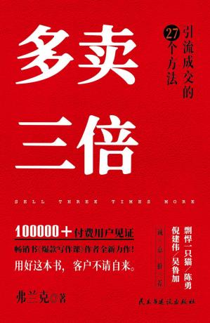 这是一套完整的引流成交、打造个人影响力和财富升级的干货指南。全书分为放下脸、找对人、说对话、做对事四条内容主线,囊括了认知、信念、人脉、自我销售、目标、朋友圈、文案、课程、社群、视频、咨询、促单、异议、销讲、团队、复盘、工具17项关键词。