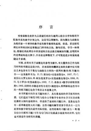 本书所载有的许多习题和例子,具有最基础的学习使用的性质,它们适用于师范学院和综合大学专业学生学习实变函数论课程大纲的基础部分。但是除了基础的习题以外,选集也包含有一系列难度较大的习题,这些习题的解答需要学员具有一定的机智和数学研究的某些经验。这些较难的习题(或与一般题目结合的循环习题)可作为专门的讨论班或小组使用的材料,它们也可作为指定的课题。