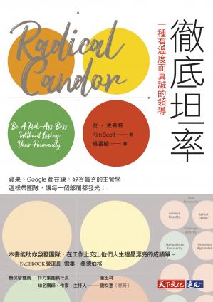 彻底坦率看起来简单、做起来难,一点分寸没掌握好,很容易流于滥情同理、恶意攻击,甚至最糟的虚与委蛇。本书提供丰富的案例、按部就班的方法以及多样的工具,是以彻底坦率经营团队关係、建立组织文化的最佳指南。