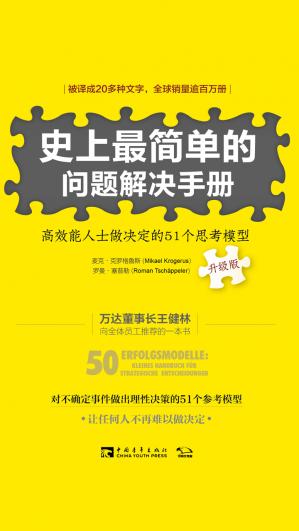 这本工具书是《*简单的问题解决手册:高效能人士做决定的51个思考模型》的升级版,在原有基础上做了一步的完善。 书中罗列的51个决策模型,针对每一个问题可能存在的情境,提供了简明的解决思路,让你清楚所处状况,从而协助你做出各式各样的关键决定。除了以文字扼要地说明每个模型以外,更用一目了然的图示让读者能够快速地掌握模型的精髓,实际运用更为容易。 你可以仿效各种模型的做法,对自身的情况行分解,做出符合现状的决定。当你准备简报或行年度绩效考核时,在你评估赚钱子或投资计划时,乃至于该如何让其他人更快地认识你……你都可以在书中找到适合的模型,让它引导你做出理性且高效的决定。 本书介绍的模型都符合以下标准: 简化:将复杂的问题转化为一目了然的图示。 务实:聚焦于实用的部分。 摘要:这些模型会摘要说明复杂的相互关系。 视觉性的:模型通过图表说明,传达文字难以表达的概念。 有组织的:模型提供一种结构,并且建立一种档案系统。 这些模型是方法:它们并不会提供回答,而是提出问题,当你运用这些模型时,答案就会自然浮现。【推荐语】被译成20多种文字,全球销量逾百万册,加料升级,重磅归来。 ·万达董事长王健林向全体员工推荐的一本书。 ·51个决策模型是应对不确定性挑战的高效思维和实用方法,让任何人不再难以做决定。 每一天我们都面临着各种做决定的时刻,从中午吃什么,该哪件商品,到如何解决与某个同事的纠纷,甚至更大的问题:如何激励我的团队,如何提升工作效率,怎样实现自己的目标,等等。 在信息大爆炸的人工智能时代,思考模型有助于我们在漫无头绪的时候找出规律和关键,判断价值,专注于真正重要的事物,并做出恰当的决定。 本书罗列的51个参考模型有助于你对不确定事件做出理性决策: ·SWOT分析法:如何评估优势、劣势、机会与威胁 ·是非原则:怎样快速做出决定 ·个人表现模型:检测是否应该更换工作 ·鉴往知来模型:怎样利用过去掌握未来 ·期望值模型:选择合作伙伴时该注意什么 【作者】 麦克·克罗格鲁斯,曾于柏林自由大学修习政治,2003年毕业于丹麦著名的非传统商学院Kaospilot。曾任职于纽约的青年电视节目《世事杂谈》,后于瑞士NZZ Folio月刊担任编辑。2009年起,以自由新闻工作者的身份在德国《星期五》周报、杂志、瑞士《新苏黎世报》等媒体上发表文章。 罗曼·塞普勒,曾任职于瑞士创意商店公司,在青少年时期即创立了一家文化中心。2003年毕业于Kaospilot,2004年创办Guzo传媒公司,提供创意与创新执行的顾问咨询服务。
