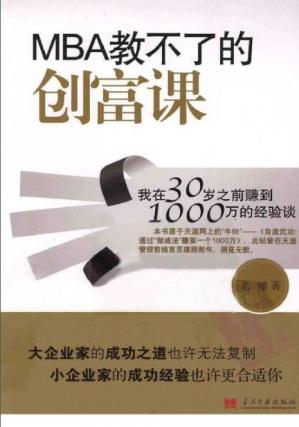 《MBA教不了的创富课:我在30岁之前赚到1000万的经验谈》内容简介:拥有自己的一份事业是每个青年人的梦想,但是当真正要开始的时候,却往往有无从着手的感觉。创业,有太多“迷思”困扰大家。《MBA教不了的创富课:我在30岁之前赚到1000万的经验谈》凝结了作者在30岁之前赚到1000万元的成功之道。语言锐利、诙谐,直达商业本质。它告诉年轻人必须具备创业的激情,以及如下的经验:·1000万元是比较靠谱的初次创业目标;·打游击时,必须存着“建立根据地”的心态和嗅觉;·草创时宜专制,壮大后宜开明。战略上宜专制,战术上宜开明;·要拿着“批判的眼光”去听课、读书!否则“尽信书则不如无书”;·真实的创富过程,琐碎、枯燥、乏味、重复……所谓“激情燃烧的岁月”,更多是事后的“加料回忆”。