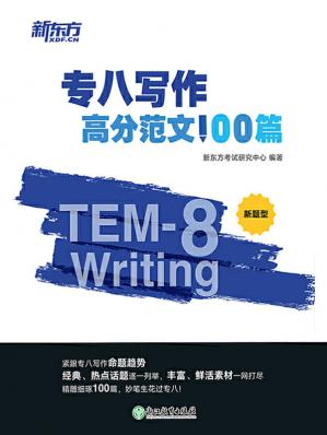 《专八写作高分范文100篇》在深刻剖析历年写作真题命题规律及命题趋势的基础上,将专八写作常考话题划分为教育学习、求职就业、文化现象、科技发展、立身处世、经济民生和形色社会七大类,并根据每类话题考查的频次,为每类话题精心设计和编写若干篇高质量的作文,总共100篇专八新题型作文,供考生有针对性地进行写作训练。每篇作文设置了“审题立意”“写作框架”“精彩范文”“主题词汇”“ 亮点句式”栏目,呈现写作思路、结构框架、行文技巧与亮点词句,全面训练考生的写作思维,帮助考生运用有效的写作技巧快速搭建作文框架。100篇作文提供了丰富多样的话题素材,其内容包罗万象,鲜活生动,从总体上来说,既具有经典的人文视角,又兼具强烈的时代气息,相信考生通过认真学习之后,一定能够做到触类旁通、举一反三。