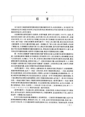 本书是学习高等代数和线性代数的辅导参考书,内容系统深入。在内容的组织上,以清华版《高等代数学》(张贤科、许甫华编着,第2版2004年)各章为基准,内容有:系统的线性代数学,数与多项式理论,近世代数介绍,变换族(群),正交几何与辛几何,Hilbert空间,张量积和外积等,共12章。每章包括:概念和定理介绍;解题方法思路的分析总结;《高等代数学》(第2版)中全部习题的详细分析解答;补充题与解答,书中融入了作者在中国科学技术大学和清华大学的数学系和非数学系的长期教学经验和科研心得。本书适用于各类高校学生学习和复习高等代数或线性代数时参考,还适合于各类考试(例如研究生考试)前的复习以及应用代数知识的科技人员学习参考。